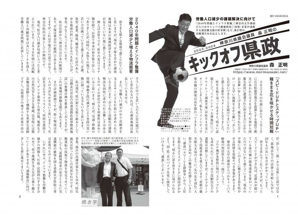 ⇒ 神奈川県議会議員 森正明 広報誌「キックオフ県政 2023-2024年号」